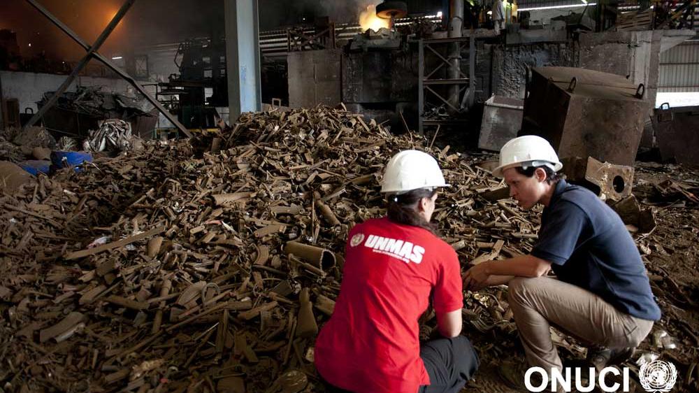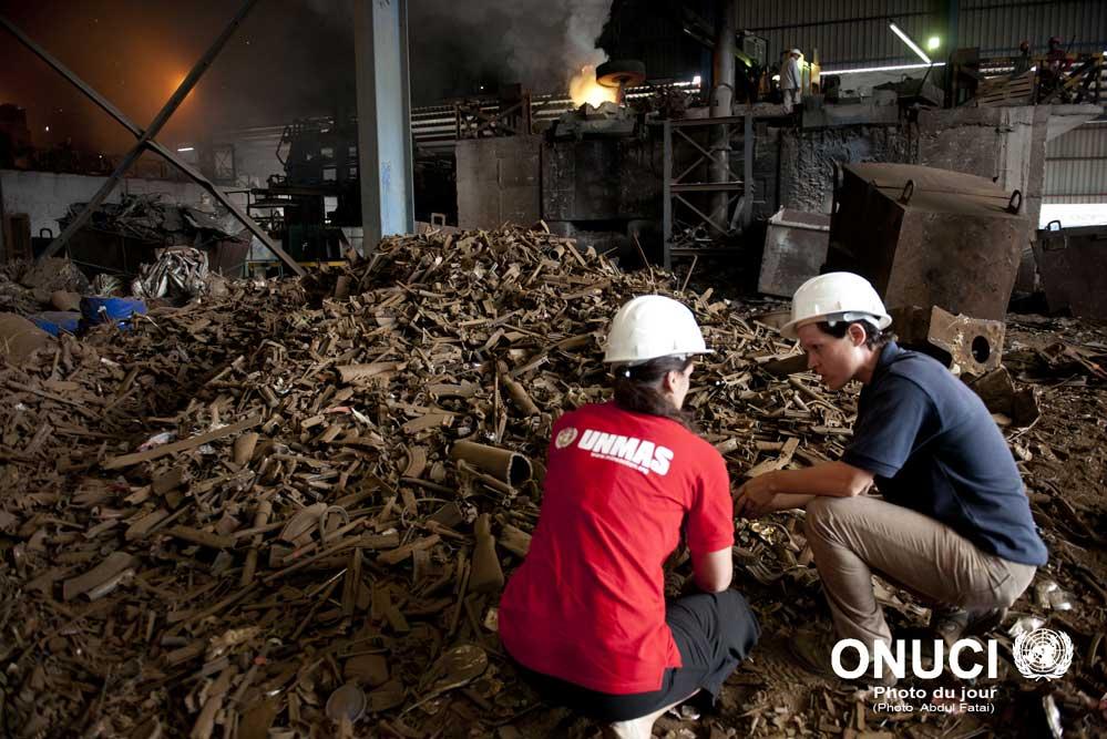 A weapons-melting operation at a steelworks in Yopougon organised by the UN Mine Action Service (UNMAS) working with UNOCI, in collaboration with COMNAT-ALPC (Abidjan, January 2015)