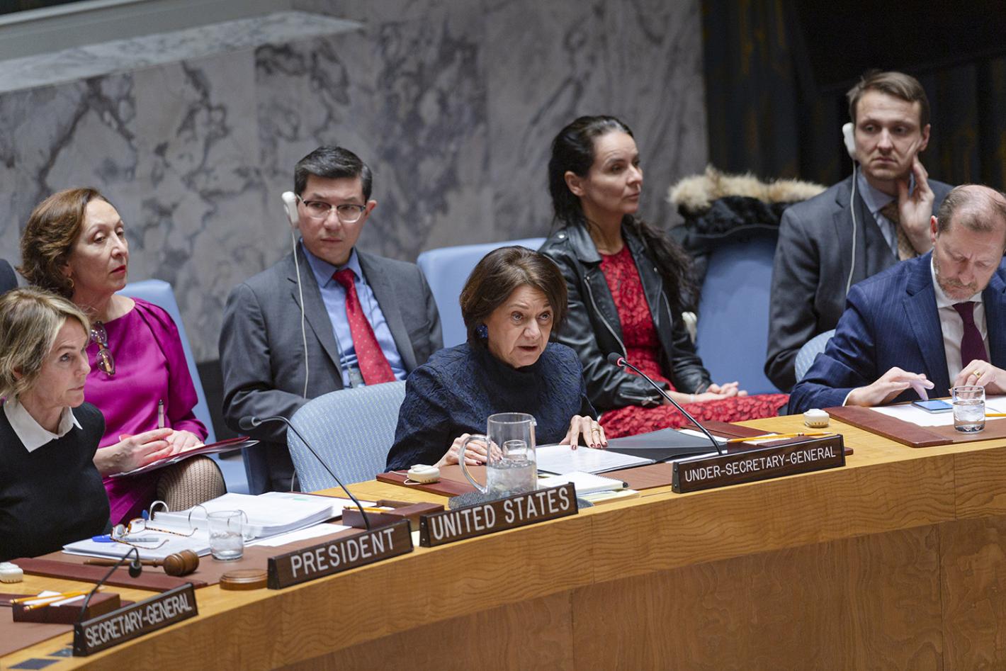 Rosemary DiCarlo, Under-Secretary-General for Political Affairs, briefs the Security Council on the implementation of Resolution 2231 (2015) and the preservation of the Joint Comprehensive Plan of Action (JPCOA). UN Photo/Rick Bajornas - 19 December 2019