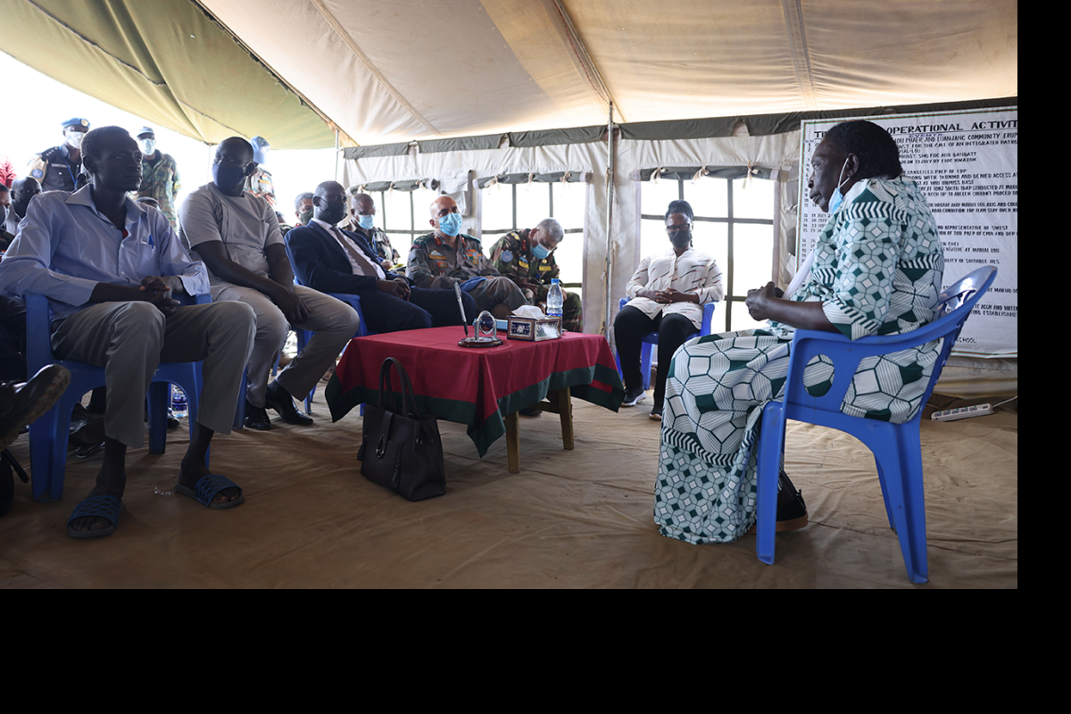 UNMISS Force Commander, Lieutenant-General Shailesh Tinaikar, and a high-level delegation of authorities recently visited Marial Lou following recent conflict here. Photo by Zejin Yin/UNMISS