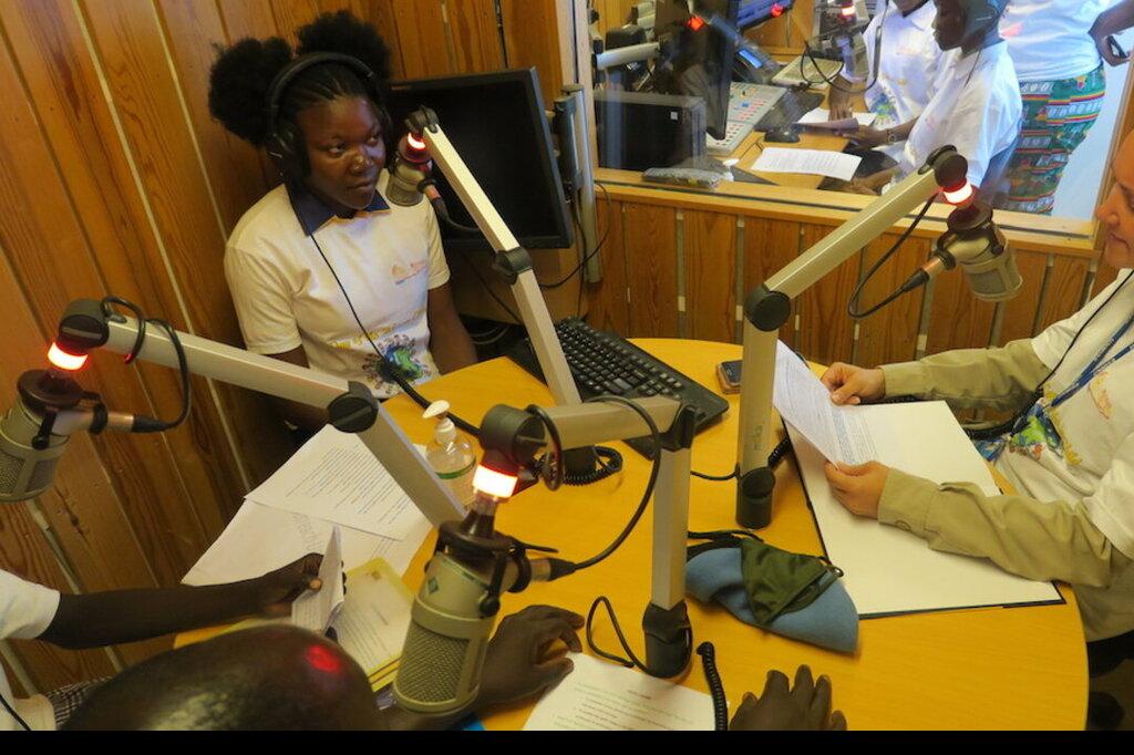 Schoolchildren took over, mostly, Radio Miraya on the Day of the African Child. Photos: Moses Pasi/UNMISS