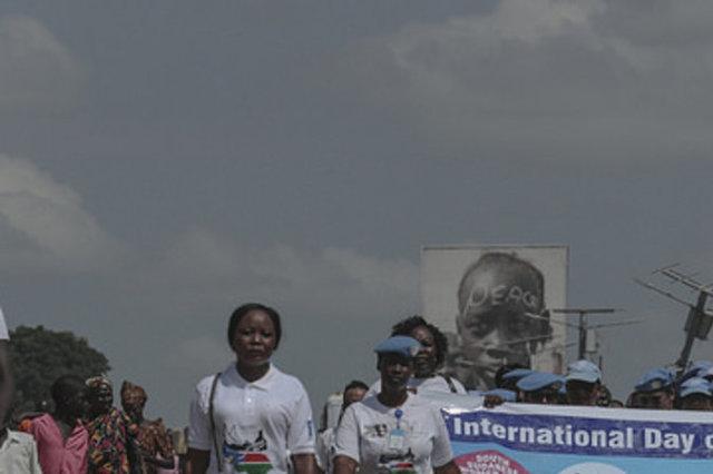 Civil society groups, students, and UN peacekeepers march through the streets of Juba on International Day of Peace, with banners declaring, "Peace is a Human Right" Close to 700 South Sudanese marched through the country’s…