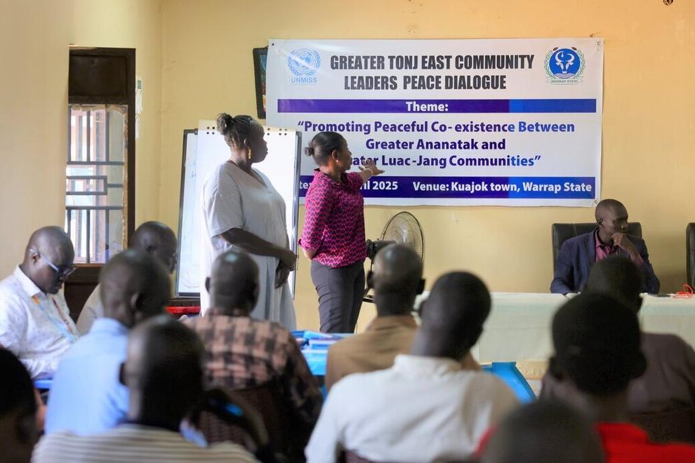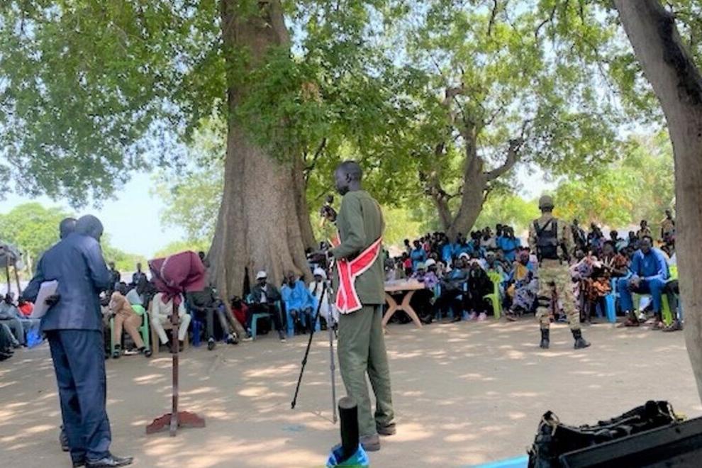 At an UNMISS-supported conference, community leaders from across Tonj East pledged to stop the persistent conflict that is causing immense suffering and established committees to monitor progress so that their resolutions don't become empty promises. Photo by Zejin Yin/UNMISS.