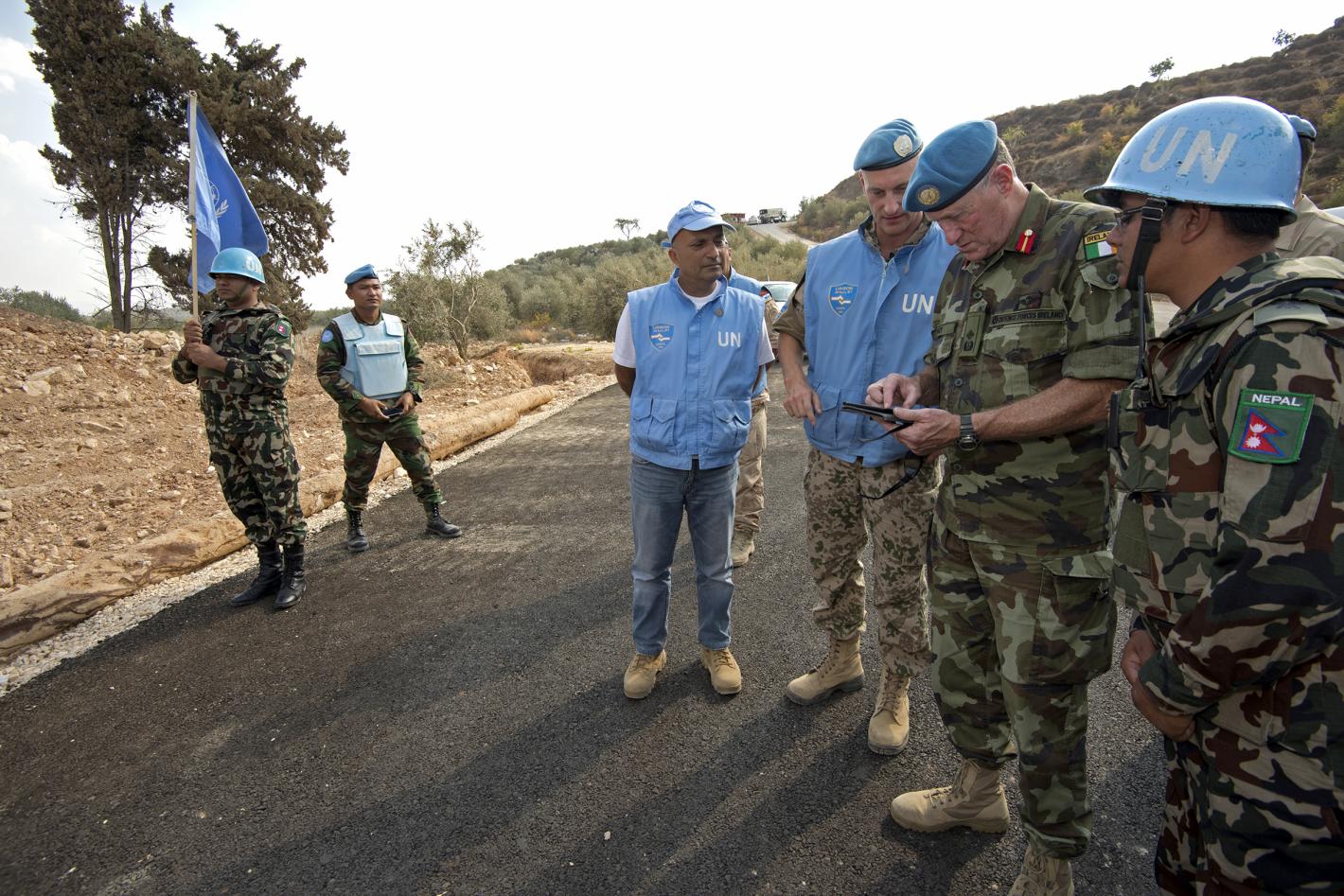 UNIFIL Head of Mission and Force Commander Major General Michael Beary visits the Blida area, close to the Blue Line, together with UNIFIL liaison officers. It's autumn in Lebanon and the Blida olive fields that span the Blue…