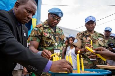 Lighting candles at UNMISS Juba to commemorate 21st anniverary of Rwandan genicide against Tutsi. Photo: UNMISS/JC McIlwaine