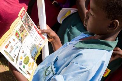 Reading educational material at event in Juba celebrating International Day For Mine Awareness and Assistance in Mine Action. Photo: UNMISS/JC McIlwaine