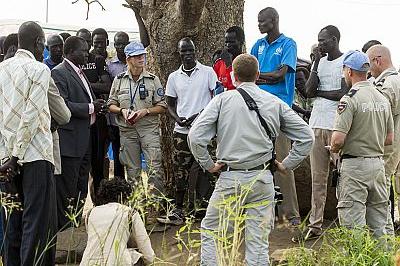 UN Police at Juba Protection of Civilians site meeting with internally displaced persons’ leaders and Community Watch Group, which provides security in camp. Photo: UNMISS/JC McIlwaine