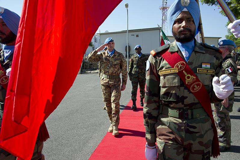 UNIFIL Head of Mission and Force Commander Major-General Luciano Portolano saluting the Guard of Honor at UN Day ceremony.