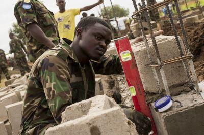 Soldier from UNMISS Rwandan Battalion, which is working with local community to construct new primary school at Kampuri, Juba. Photo: UNMISS/JC Mcilwaine