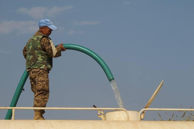 The UNMISS Mongolian battalion has been fetching and distributing water to civilians sheltering on the mission’s Bentiu base since 19 December. The battalion is currently hauling 930 tons of water per day. Photo: UNMISS/Anna…