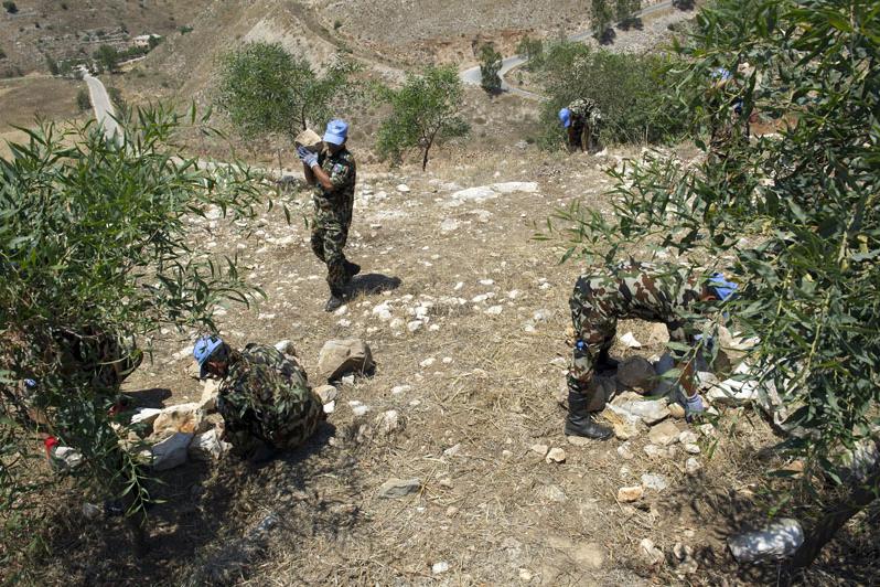 UNIFIL peacekeepers working on the restoration of the castle.