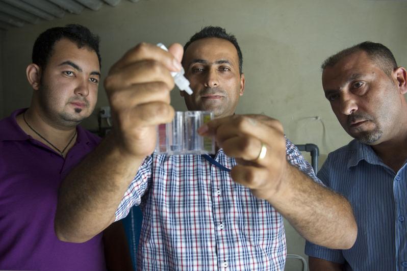 Mr. Zakhia Al Berry, from UNIFIL’s Engineering Support Section, testing chlorine during the training.