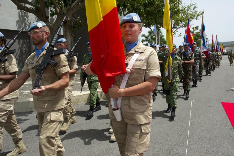 UNIFIL peacekeepers marching during the ceremony to commemorate International day of Peacekeepers 29 May 2013.