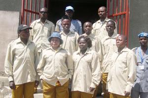 Bunia, 03 January 2011 - Prison guards at the Bunia Central Prison have been presented with new uniforms that makes them easily identifiable. In all twelve officers, two of them women, received the uniforms from MONUSCO…
