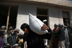 11 April 2010 - Mohamed Yacoub, 60 years old, collects a bag full of wheat and peas, a can containing cooking oil, a small portion of salt. His hands are thick from working the land; his face burnt spending days under the sun…