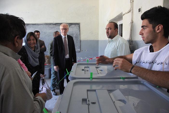 KABUL - UN envoy Kai Eide has visited one of the polling stations in Kabul at the Zarghona High School in the Qala-i-Fatullah area of the city. Pictures of the SRSG at the polling station During the visit, Mr Eide said: “I am…