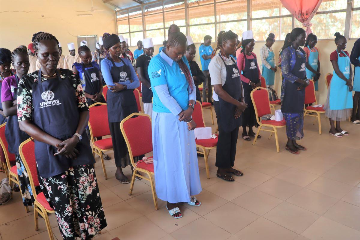 In collaboration with Women's Vision organization, a three-month UNMISS vocational training helped local women of Bentiu to acquire practical skills in tailoring, bread-making and hairdressing. Photo by Jacob Ruai/UNMISS.