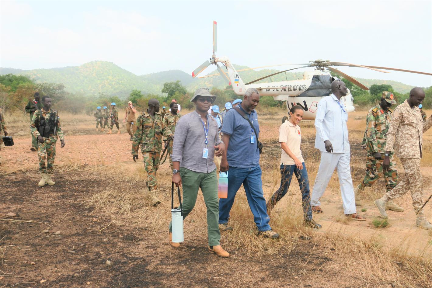 Committed UNMISS peacekeepers recently visited remote Timsaha, where some 5,000 community members reside peacefully. Their aim: To build confidence before this tranquil border settlement faces an influx of returnees fleeing the Sudan crisis. Photo by Roseline Nzelle Nkwelle/UNMISS.