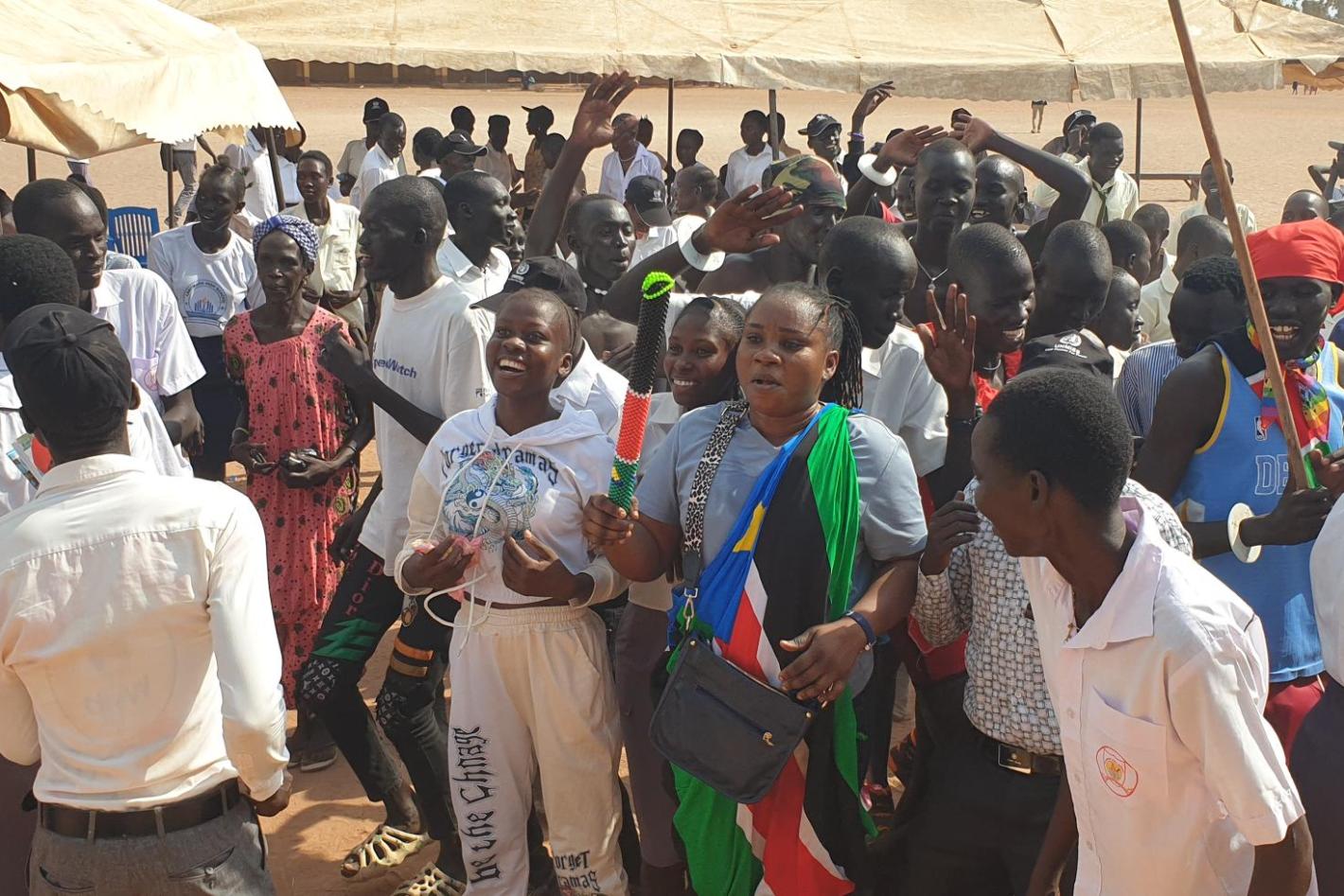 A two-month cultural exchange among six secondary schools in Rumbek, South Sudan, saw young students using the performing arts to depict the importance of lasting peace, social cohesion and forging a unified national identity. Photo by James Mawien/UNMISS.