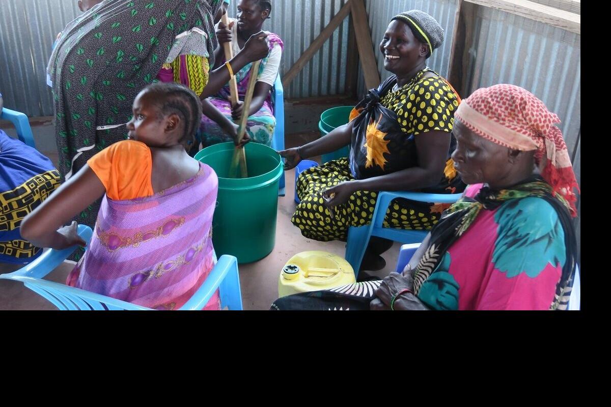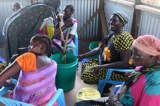 Building self-reliance through teaching income-generating skills: That's the leitmotif of an UNMISS-funded training activity for displaced persons in Mangateen,South Sudan. 45 young people are learning to bake, sew, make soap and eventually become small business owners. Photo by James Sokiri/UNMISS