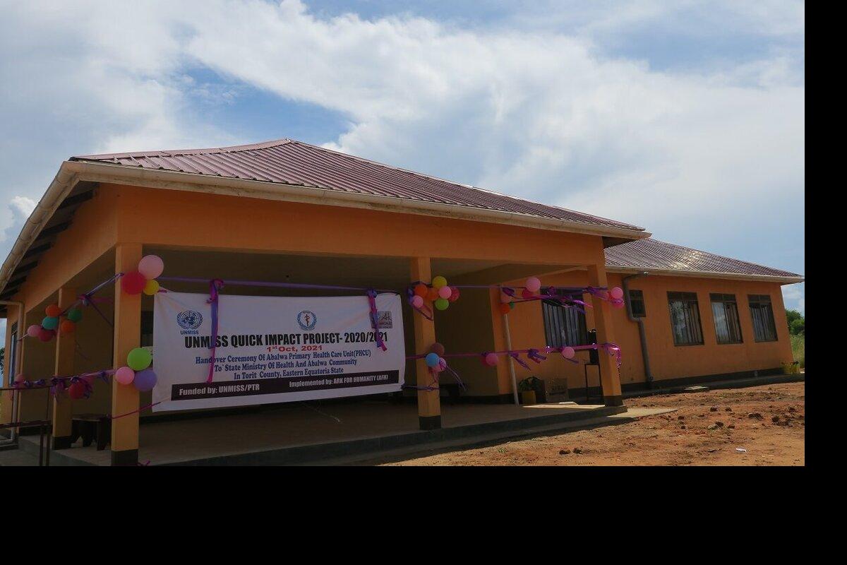 UNMISS recently handed over a seven-room primary healthcare unit with antenatal facilities, a pharmacy and delivery beds for expectant mothers to communities in Labalwa, Eastern Equatoria. Prior to this, residents had to trek for 9 kilometers to Torit to access basic health and medical services. The handover falls under the mission's Quick Impact Projects programme. Photo by Okello James/UNMISS