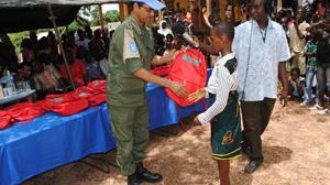 A representative of Morbatt commander urged the pupils to show perseverance in their studies, saying ""{this little gift is to encourage you to study in good condition. You should know you have a long way to go and as long as you live, you will never stop learning}"."