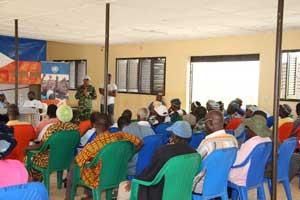 UNOCI's Disarmament, Demobilisation and Reintegration (DDR) Division and the regional office of National Authority for DDR (ADDR), also took part in the sensitisation session. The chief of ADDR's regional office, Adama Bailou and UNOCI's DDR Officer based in Man, John Nsengo, both explained the security challenges of the DDR process before urging participants to hand in their weapons and benefit from community reinsertion programmes.