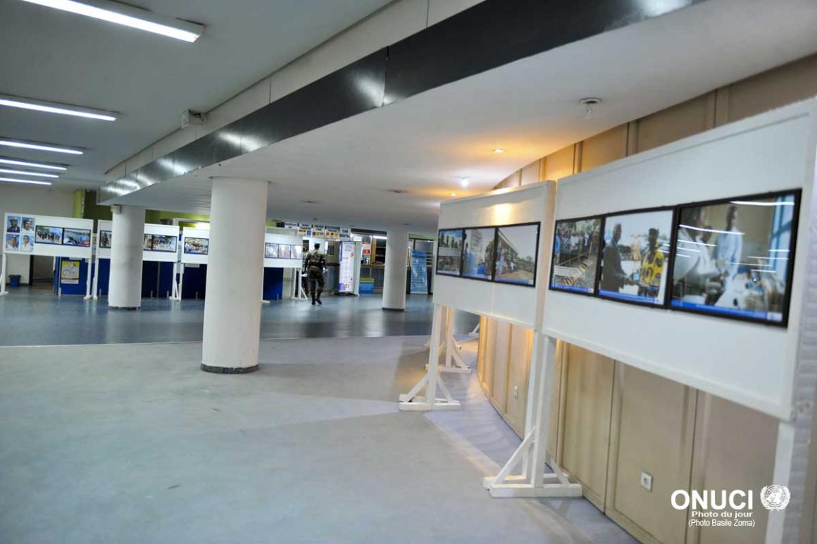 Photo exhibit of UNOCI activities organized in support of peace and stability in Côte d’Ivoire, from 2004 onwards, inside the hall of the Mission’s headquarters (Abidjan, July 2015)