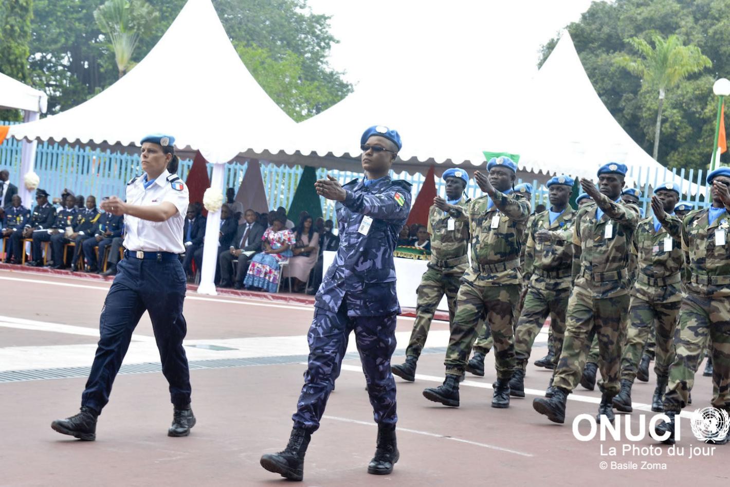 UNOCI military and police forces paraded in front of officials at the ceremony marking the 56th anniversary of the independence of Cote d’Ivoire (Abidjan, August 2016)