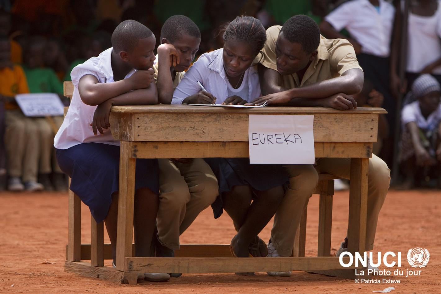 At a School Caravan during UNOCI Days in Bongouanou, local students concentrate all their attention on finding good answers to the Quiz "Genies en herbe"(Bongouanou, February 2012)