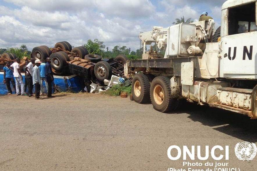 The Moroccan Contingent of the United Nations Operation in Côte d'Ivoire (UNOCI) provided help to injured victims of a road accident on 5 November 2015 in Guézon, a village situated at some 20 km east of Duékoué. A lorry had…