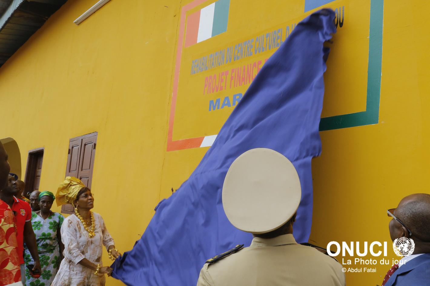 The Special Representative inaugurates the new Cultural Centre of Agnibilekrou, rehabilitated by UNOCI, as part of its Quick Impact Projects Program ( Agnibilekrou, July 2016 )