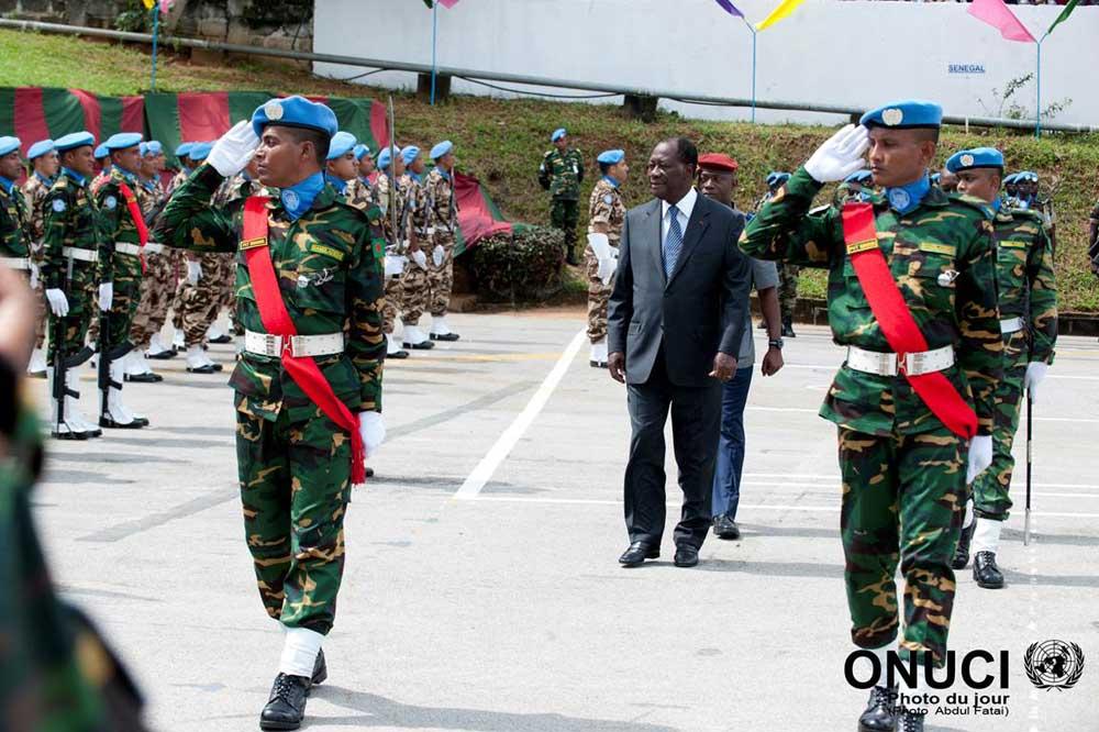 The President of Côte d'Ivoire, Mr. Alassane Ouattara, heads of institutions, Government officials and military authorities, as well as members of the diplomatic corps and representatives of United Nations agencies and the…
