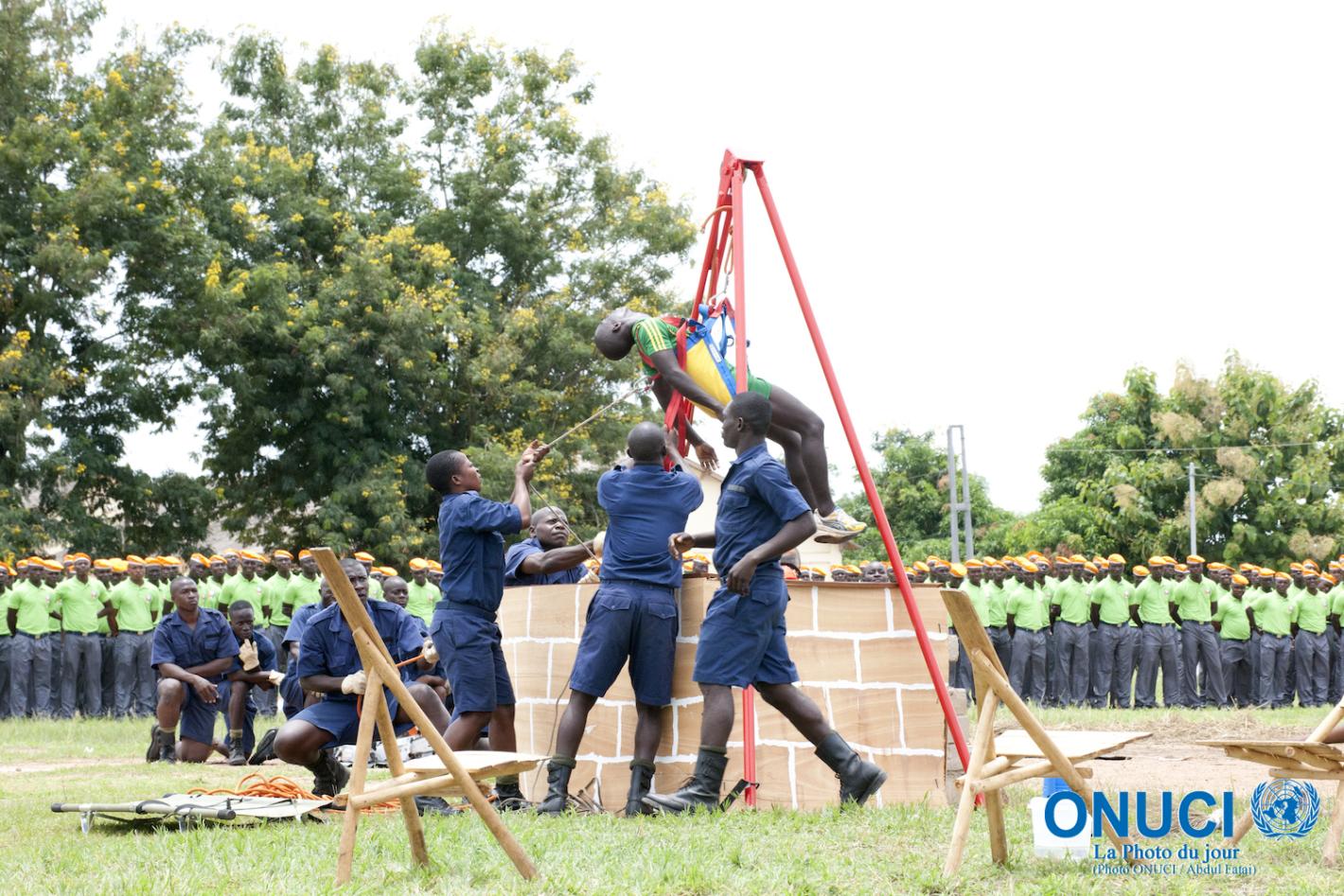 The camp of the Anti-Riot Brigade in Yopougon, on 29 April 2015, hosted the closing ceremony of a training programme on democratic crowd control organised by the United Nations Police (UNPOL) which started on 27 April 2015…