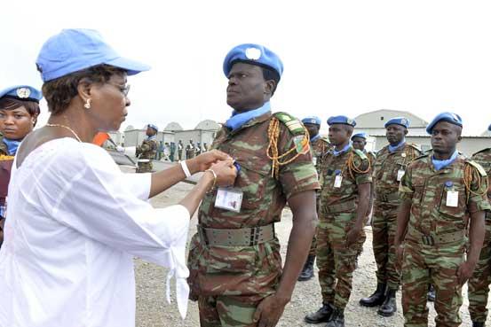 The Special representative of the Secretary General of the United Nations for Côte d’Ivoire, Aïchatou Mindaoudou, on 27 May 2016, presided over the ceremony of decoration of 368 peacekeepers of the Benin Contingent (BENINBATT…
