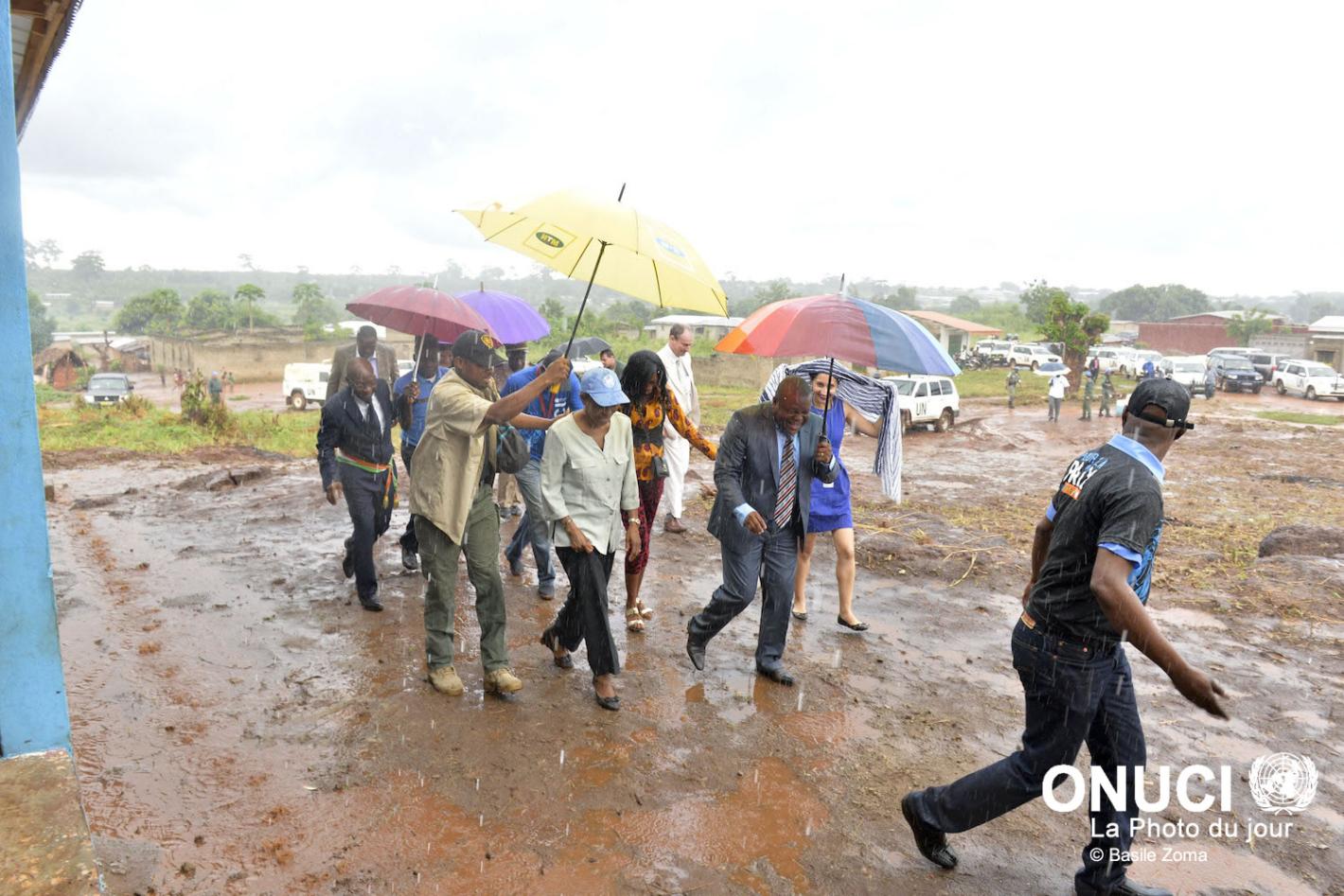UN Days in Vavoua: Under pouring rain, the Special Representative proceeded to inaugurate the food market built by UNOCI for the women of the city (Vavoua, May 2016)