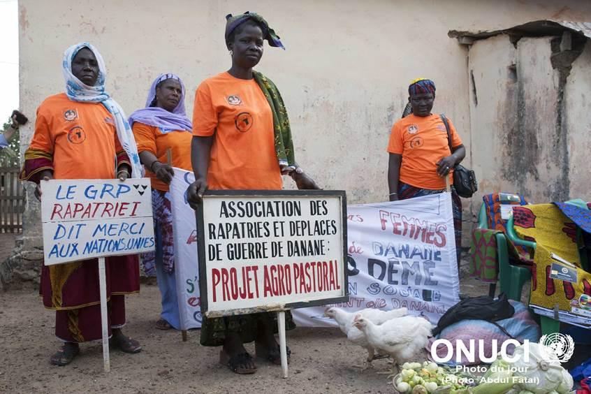 Former Ivorian women refugees, on their return from Liberia, grouped together in organisations to achieve better reintegration into their communities (Danane, April 2016)