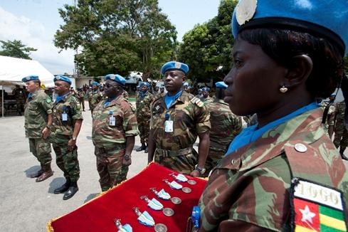 The Special Representative of the United Nations Secretary-General for Côte d'Ivoire, Mrs Aïchatou Mindaoudou, on Thursday, 13 March 2014, in Abidjan, decorated peacekeepers from the 19th Togolese contingent (TOGOBATT) of the…