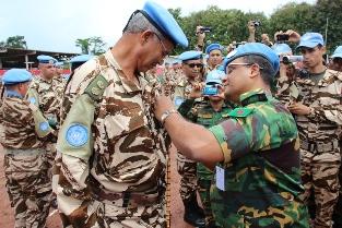 Officers, sub officers and non-commissioned soldiers from the 18th Moroccan Contingent of the United Nations Operation in Côte d'Ivoire (UNOCI) on Wednesday, 25 September 2013, in Duekoué, situated 502 km west of Abidjan…