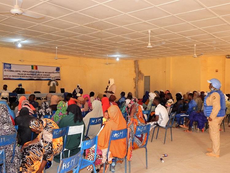 Les populations d’Ansongo et de Labbezanga ont eu droit à une série d’activités en faveur de la mise en œuvre de la Police de proximité du 31 mars au 1er avril 2022. Elles interviennent après le lancement officiel, le 8 juin 2021, du projet police de proximité par la Police de la MINUSMA (UNPOL) dans la région de Gao. Plus de 450 participants dont ceux venus de Labbezanga en raison de la situation sécuritaire qui y prévaut, ont pris part aux séances de sensibilisation sur le concept de la police de proximité. L’implication des femmes dans sa mise en œuvre, l’insertion des jeunes filles dans les Forces de sécurité maliennes, le danger des stupéfiants et la formation des membres des comités consultatifs de sécurité des deux communes ont été entre autres les sujets abordés.