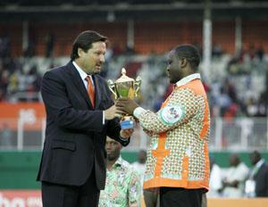 Le Représentant spécial adjoint du Secrétaire général des Nations Unies pour la Côte d'Ivoire, M. Georg Charpentier, a remis le trophée au Premier Ministre Guillaume Soro qui l'a ensuite transmis au Chef de l'Etat ivoirien, Laurent Gbagbo, qui a présidé la finale remportée par la République Démocratique du Congo devant le Ghana (2-0).