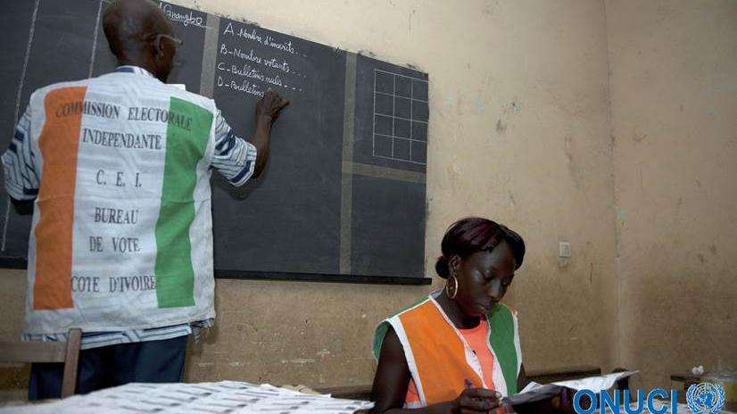 - Dépouillement dans un bureau de vote après le scrutin présidentiel du 25 octobre (Abidjan, octobre 2015)