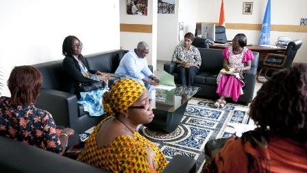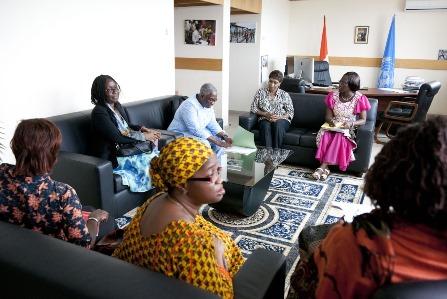 La Représentante spéciale du Secrétaire général des Nations Unies pour la Côte d'Ivoire, Madame Aïchatou Mindaoudou, a reçu, mardi 25 novembre 2014, une délégation du Groupe des organisations féminines œuvrant pour l'égalité homme femme (GOFEHF), conduite par son Porte-parole, Mme Rachèle Gogoua.