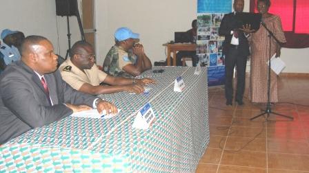 Il y a eu quatre communications faites par des partenaires nationaux de l'ONUCI, entre autres, ''les rôles et responsabilités des leaders d'opinion face aux défis de la consolidation de la paix'' par le Programme National de Cohésion Sociale (PNCS) et la Commission Nationale des Droits de l'Homme de Côte d'Ivoire (CNDHCI); ''les techniques de communication pour le changement de comportement appliquées à l'éducation de la paix'' par Search For Common Ground (SFCG).
