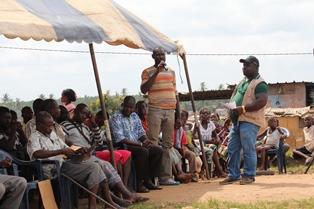 Ensuite, les différentes composantes l'ONUCI ont commencé la séance de sensibilisation en expliquant notamment leur mandat à l'assistance. Les échanges entre les visiteurs et leurs hôtes ont porté, entre autres, sur les droits de l'Homme, le processus de Désarmement Démobilisation et Réintégration (DDR) et le rôle des leaders communautaires dans la promotion de la cohésion sociale.