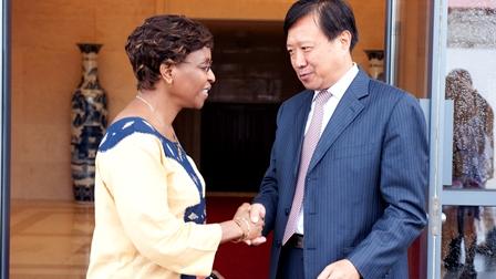La Représentante spéciale du Secrétaire général des Nations Unies pour la Côte d'Ivoire, Madame Aïchatou Mindaoudou, et l'Ambassadeur de la République populaire de Chine, M. Zhang Guoging ont échangé des points de vue sur l'évolution de la situation politique du pays, le mercredi 16 juillet 2014.