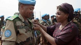La Représentante spéciale remet la médaille des Nations Unies à 150 Casques bleus du 20e contingent nigérien de l’ONUCI à Gagnoa