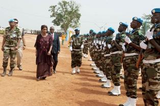 Mme Mindaoudou a ensuite remercié les Casques bleus pour le professionnalisme qu'ils ont toujours démontré dans les situations difficiles pendant toute la durée de leur mission en mettant en exergue leur implication dans les activités humanitaires à travers lesquelles ils ont apporté une aide aux membres des communautés locales. « Lorsque