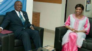 La Représentante spéciale du Secrétaire général des Nations Unies pour la Côte d'Ivoire, Madame Aïchatou Mindaoudou a échangé, vendredi 12 septembre 2014, avec le Ministre d'Etat, Ministre de l'Intérieur et de la Sécurité, M. Hamed Bakayoko, sur la Commission électorale indépendante (CEI).
