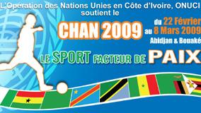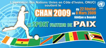 Abidjan, le 19 février 2009...L'Opération des Nations Unies en Côte d'Ivoire (ONUCI) appui le Comité d'organisation du Championnat d'Afrique de Football des locaux (COCHAN), a déclaré jeudi, à Abidjan, son porte-parole, Hamadoun Touré, lors de la conférence de presse hebdomadaire. Les compétitions de ce championnat se dérouleront du 22 février au 08 mars prochain, en Côte d'Ivoire.