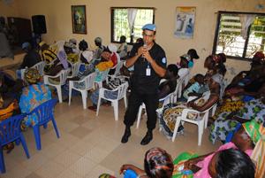 L'Opération des Nations Unies en Côte d'Ivoire (ONUCI) a échangé, mardi13 mai 2014 avec les populations de, localité située à 547 km au nord-ouest d'Abidjan, sur les droits de l'homme et les violences basées sur le genre
